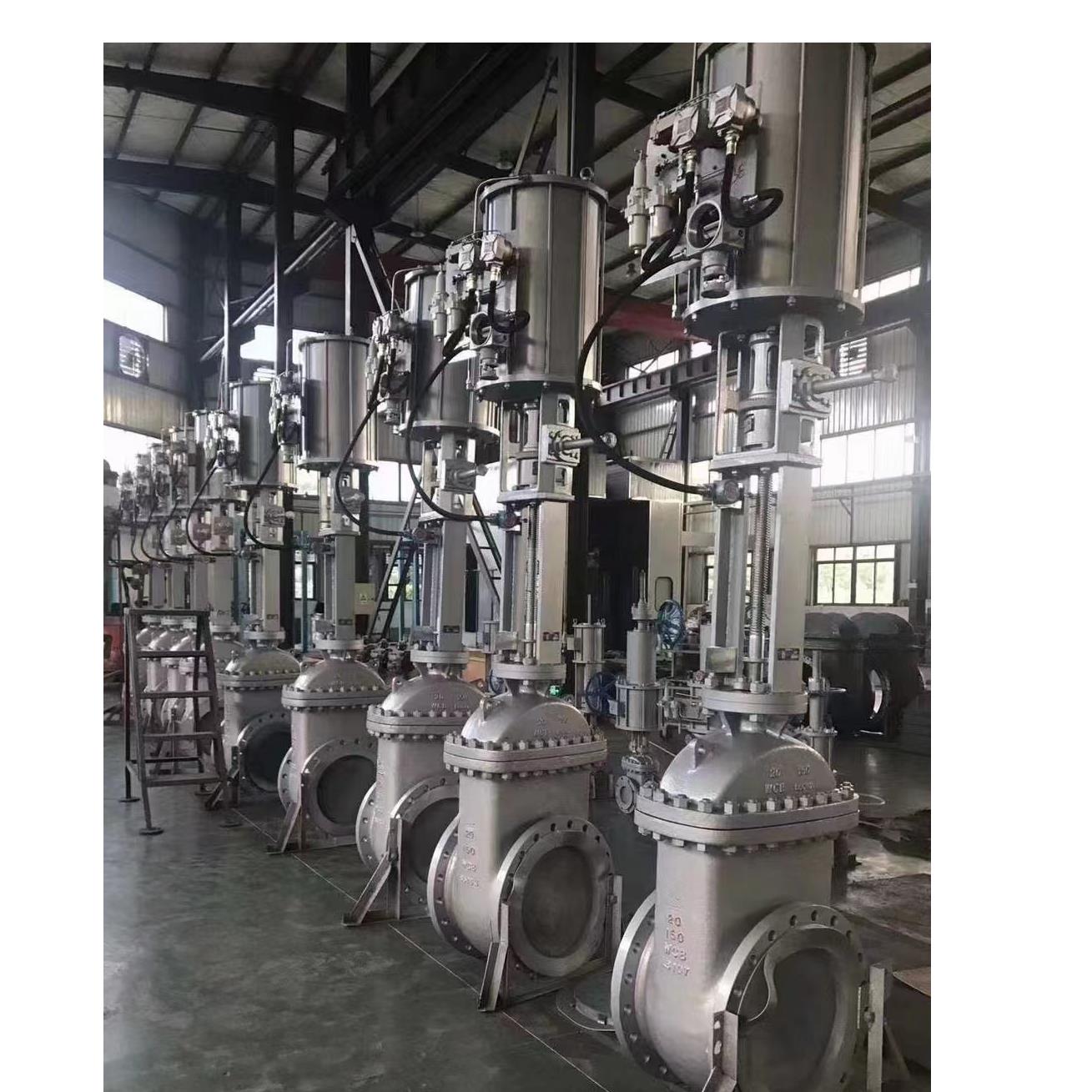 气动双闸板美标闸阀型号Z644Y-150,品牌耐苛尔,规格NPS:2"-16",压力范围:CLass150-300LB,结构形式:明杆双闸板硬密封闸阀,连接方式RF法兰,阀体材质WCB,阀座堆焊STL合金,耐温425℃,适用介质:水、气、油,操作方式:气动。