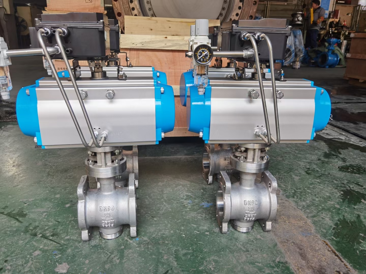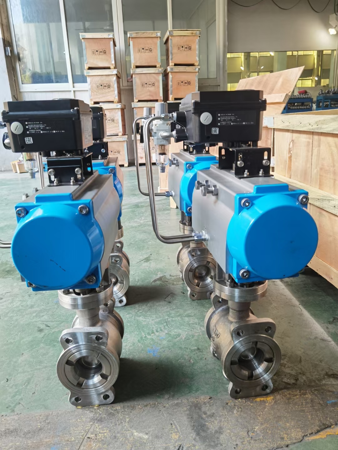 气动凸轮挠曲调节阀英文名:Control valve,型号ZSFR-16P,气缸双作用,防爆定位器带反馈,规格DN80PN16,法兰连接,流量特性等百分比,阀体CF3M不锈钢,阀芯喷涂硬质合金层硬密封,流量大调节性能好,不易堵适用含部分固体颗粒液体中。