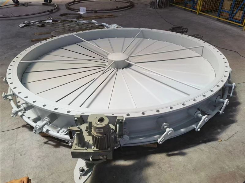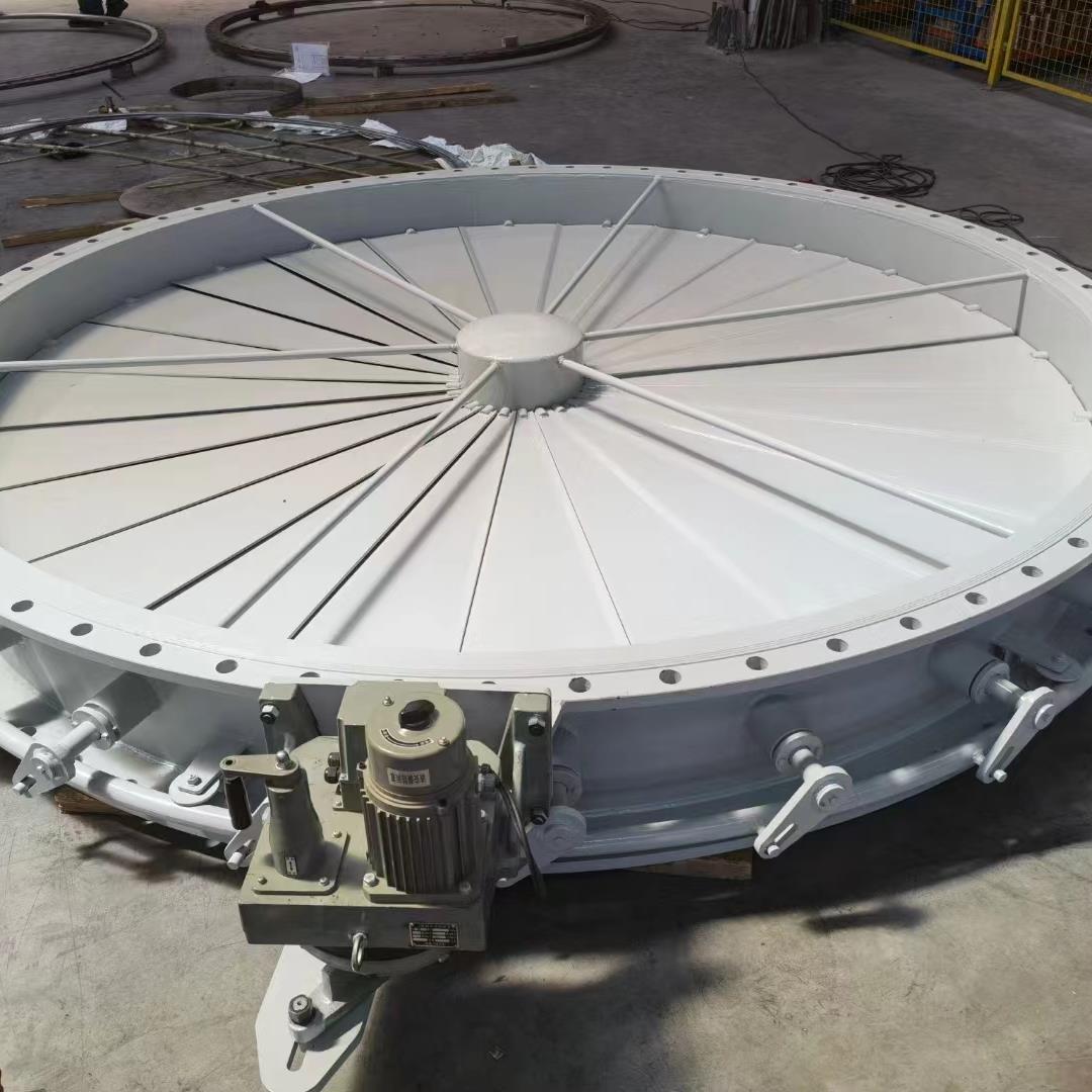 DN2400花瓣式电动风量调节蝶阀又叫风机专用阀,型号HBT-01CS,英文butterfly valve,法兰连接,耐温200℃,电压AC380V,控制信号4-20mA,主体碳钢,连接轴20Cr13,主要用于启动稳定空气流量压力作用,电控联动。
