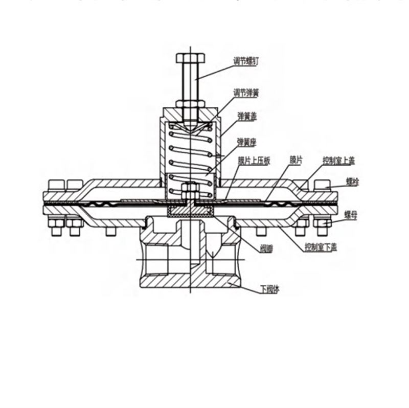 (2)平衡阀座,外部压力反馈,超大膜片感应,控制压力精确稳定。可调压至零